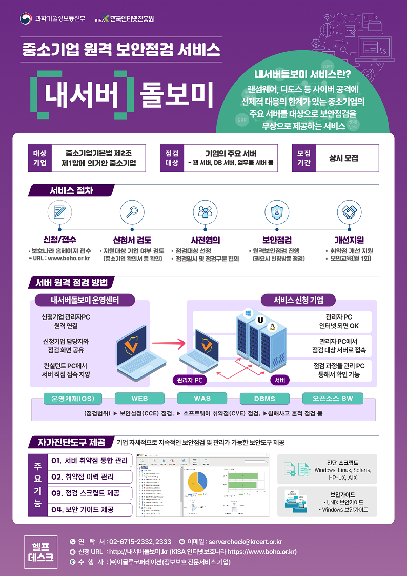 과학기술정보통신부와 한국인터넷진흥원에서 주관하는 '내서버돌보미' 서버 보안 점검 무상서비스