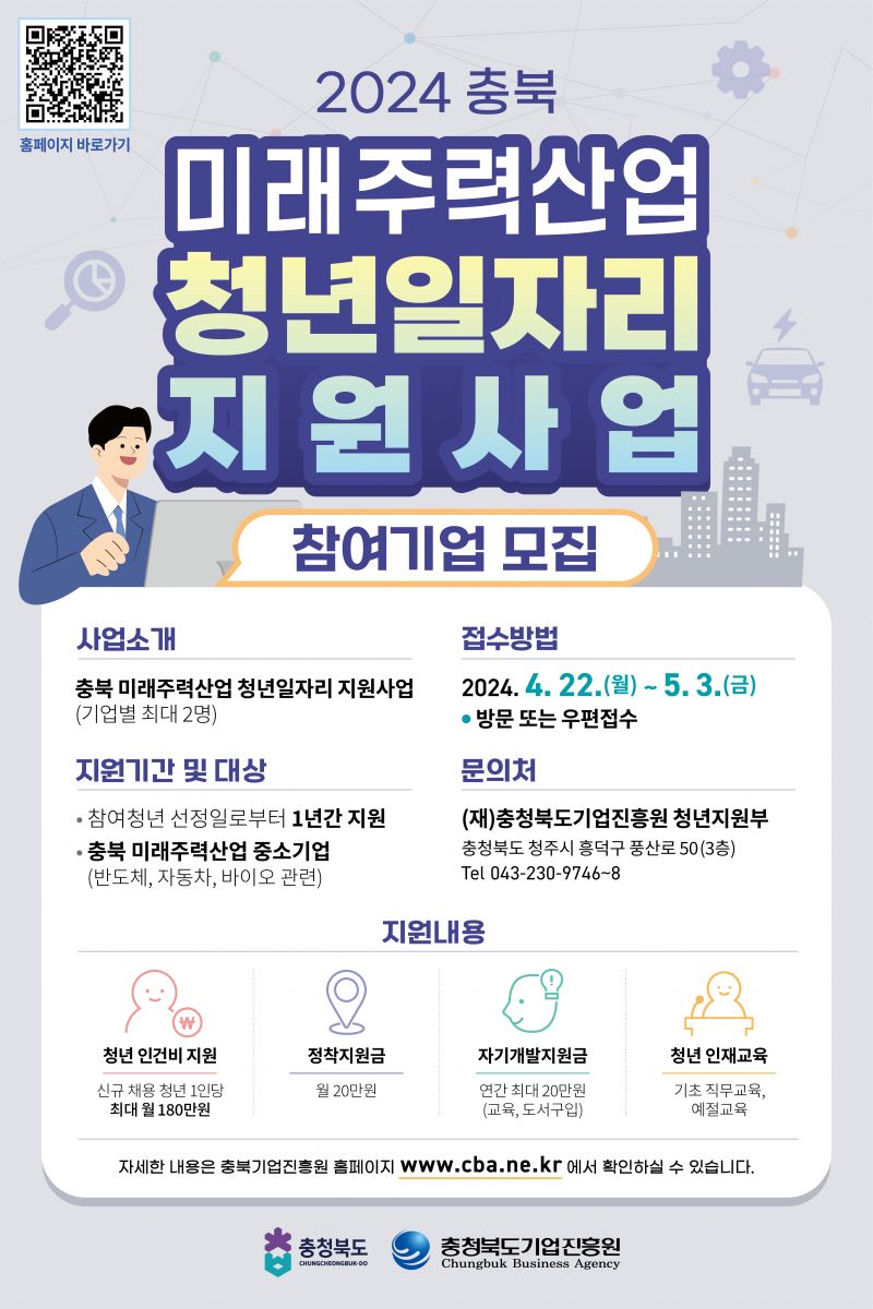 | 2024 충북 미래주력산업 청년일자리 지원사업 참여기업 모집 | |||||