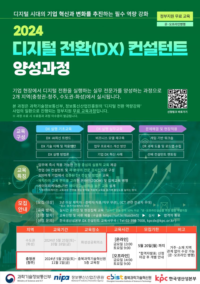 | [과학기술정보통신부-한국생산성본부] 디지털전환(DX)전문가 양성교육 모집 안내 | |||||