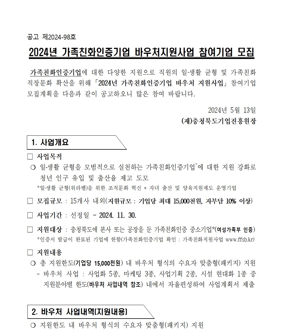 | 2024 가족친화인증기업 바우처지원사업 모집공고 | |||||
