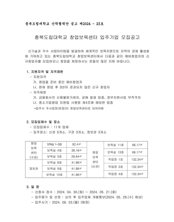 충북도립대학교 산학협력단 공고 제2024 - 23호