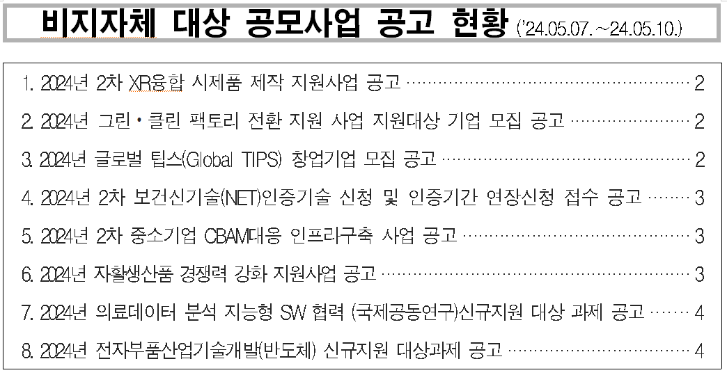 | 비지자체 대상 공모사업 공고현황 24-14호(5.7. ~ 5.10.) | |||||