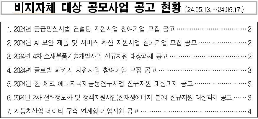 | 비지자체 대상 공모사업 공고문 24-15호(5.13. ~ 5.17.) | |||||