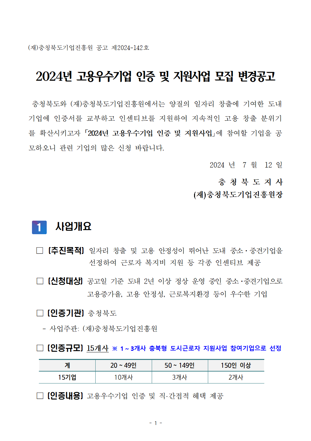 | [변경 공고] 2024년 고용우수기업 인증 및 지원사업 모집공고 | |||||