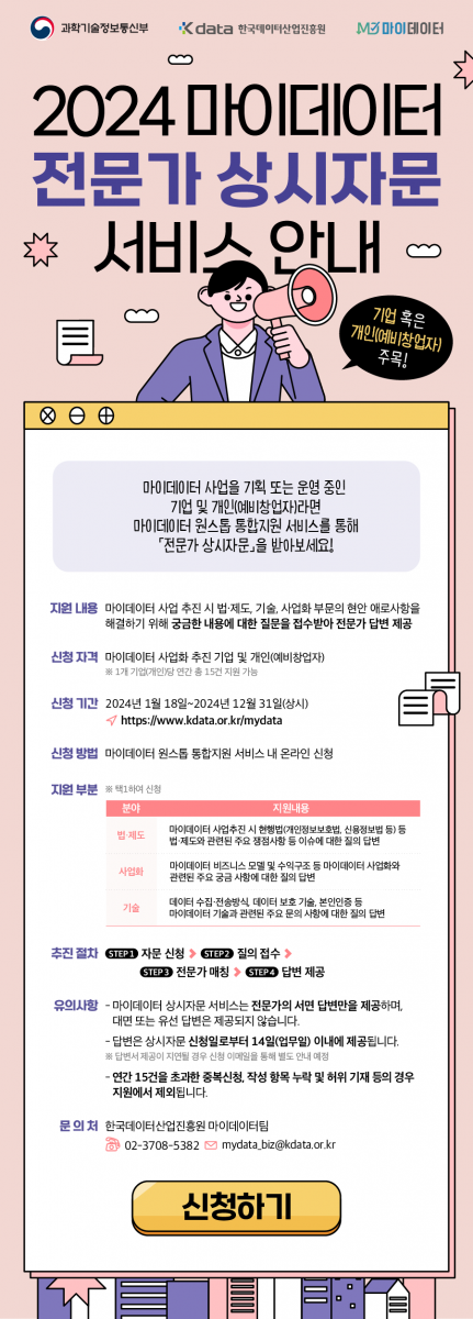 | 한국데이터산업진흥원 마이데이터 전문가 상시자문 서비스 안내 | |||||