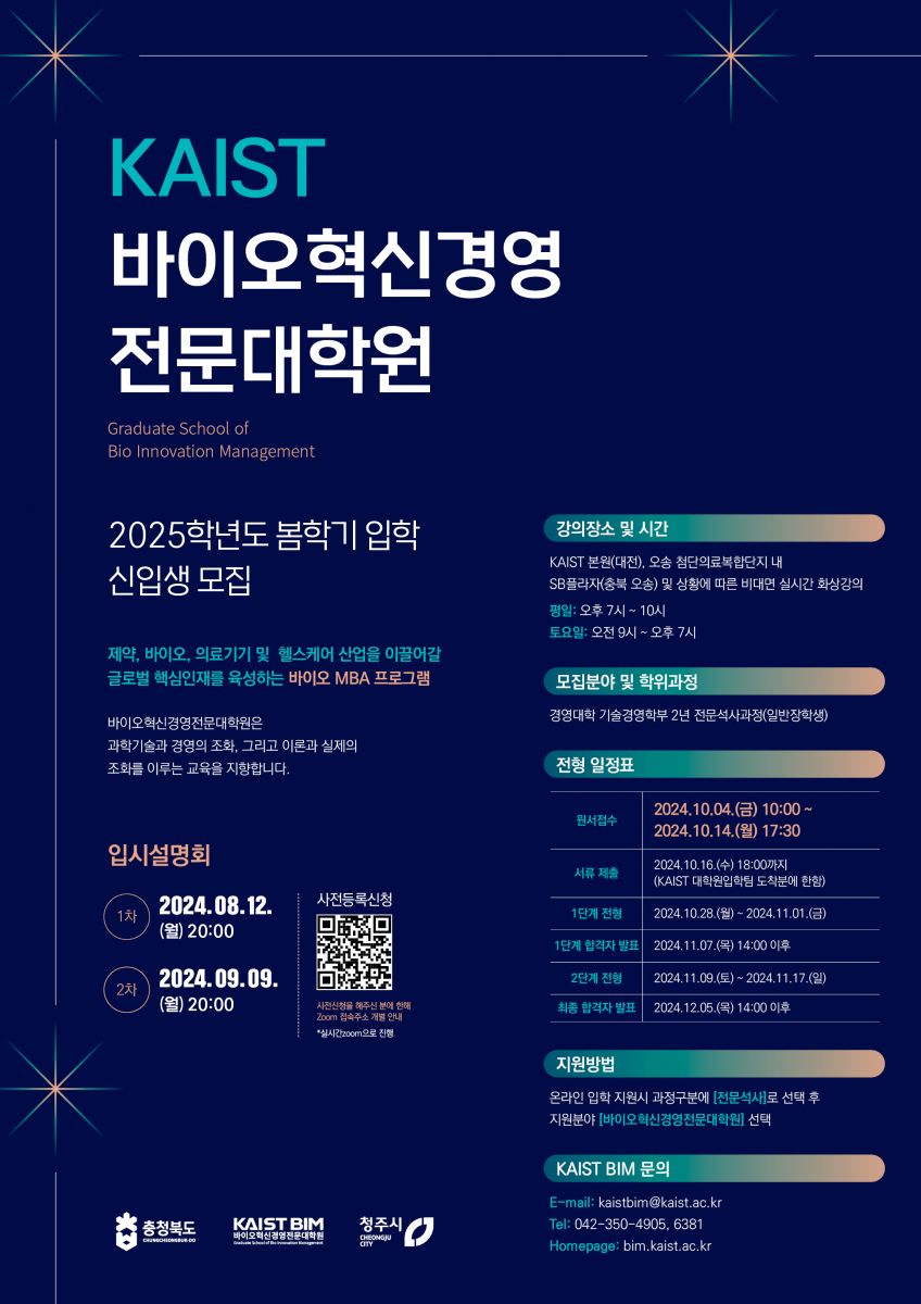 | KAIST 바이오혁신경영 전문대학원 2025학년도 봄학기 입시설명회 개최 | |||||