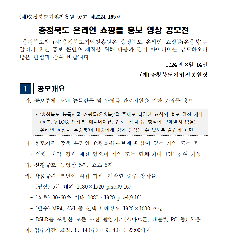 | 충청북도 온라인 쇼핑몰 홍보 영상 공모전 | |||||