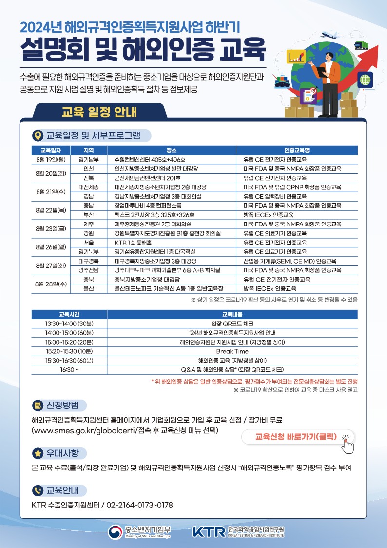 | [KTR] 2024년 해외규격인증획득지원사업 하반기 설명회 및 해외인증 교육 안내 | |||||