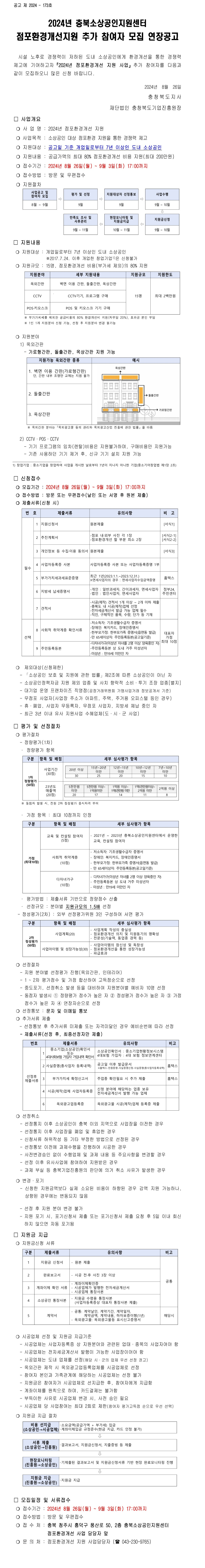 | 2024년 점포환경개선 지원 참여자 추가 모집공고(연장) | |||||