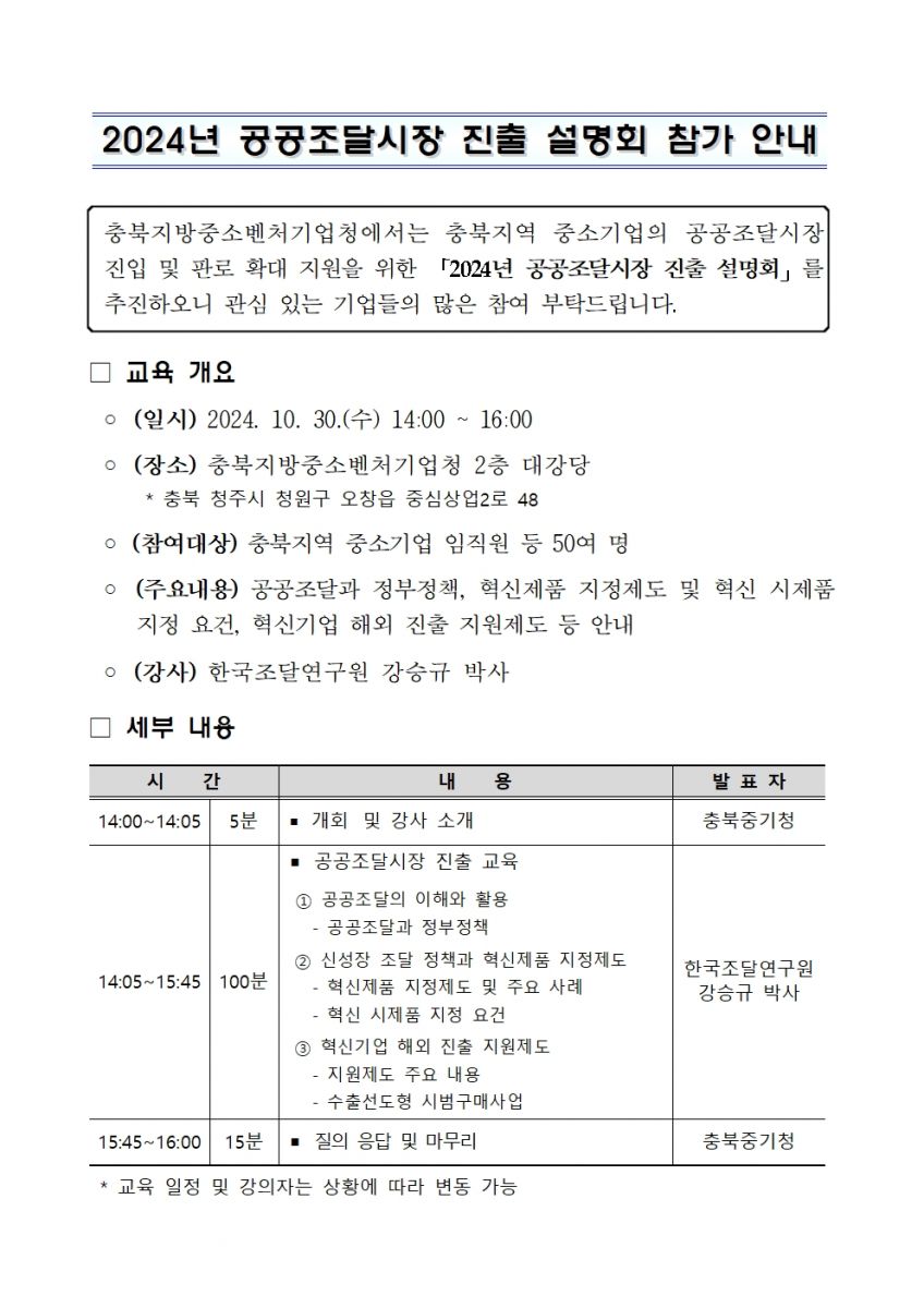 | 2024년 공공조달시장 진출 설명회 참가 안내 | |||||