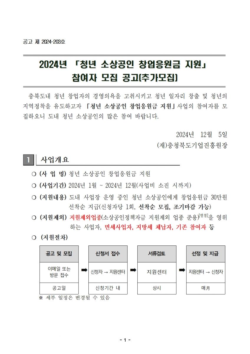 2024년 청년 소상공인 창업응원금 지원사업 참여자 모집(추가모집) 공고문.pdf