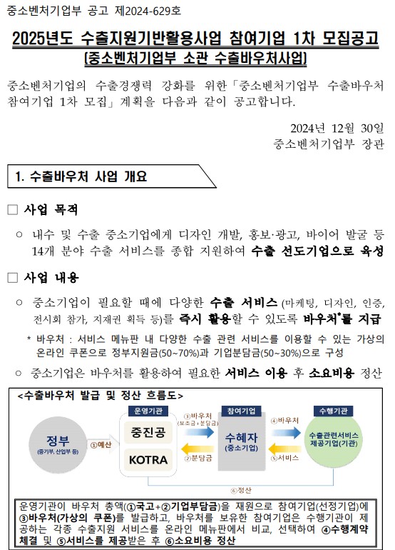 | 2025 수출지원기반활용사업 참여기업 1차 모집 공고 | |||||
