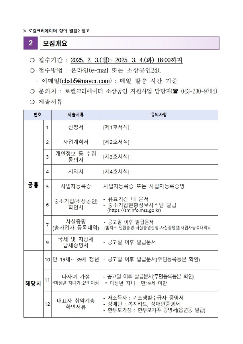 | 2025년 로컬크리에이터 소상공인 지원사업 참여자 모집 공고 | |||||