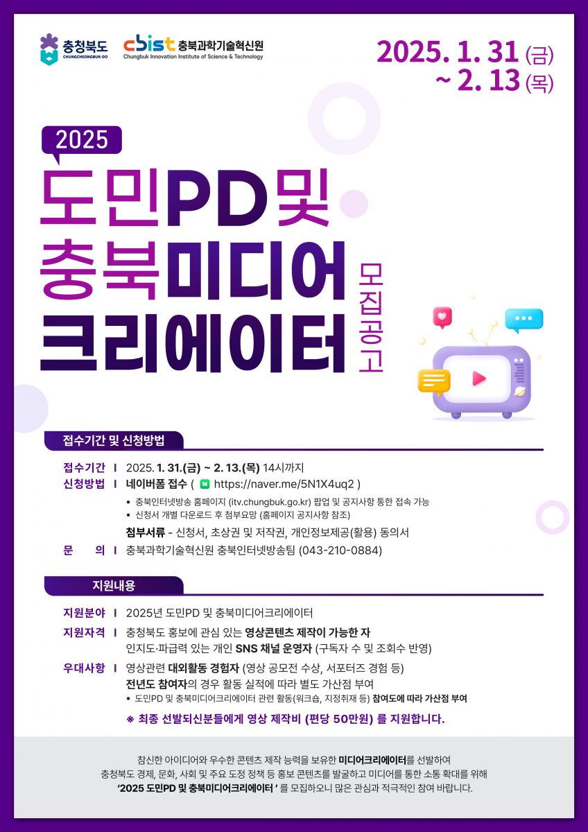 | 충북과학기술혁신원 충북미디어크리에이터 모집 홍보 | |||||