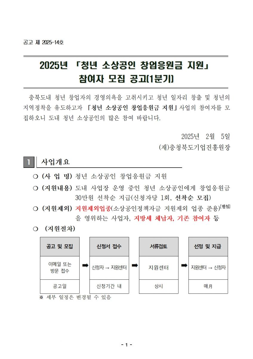 | [모집마감] 2025년 청년 소상공인 창업응원금 지원사업 참여자 모집(1분기) | |||||