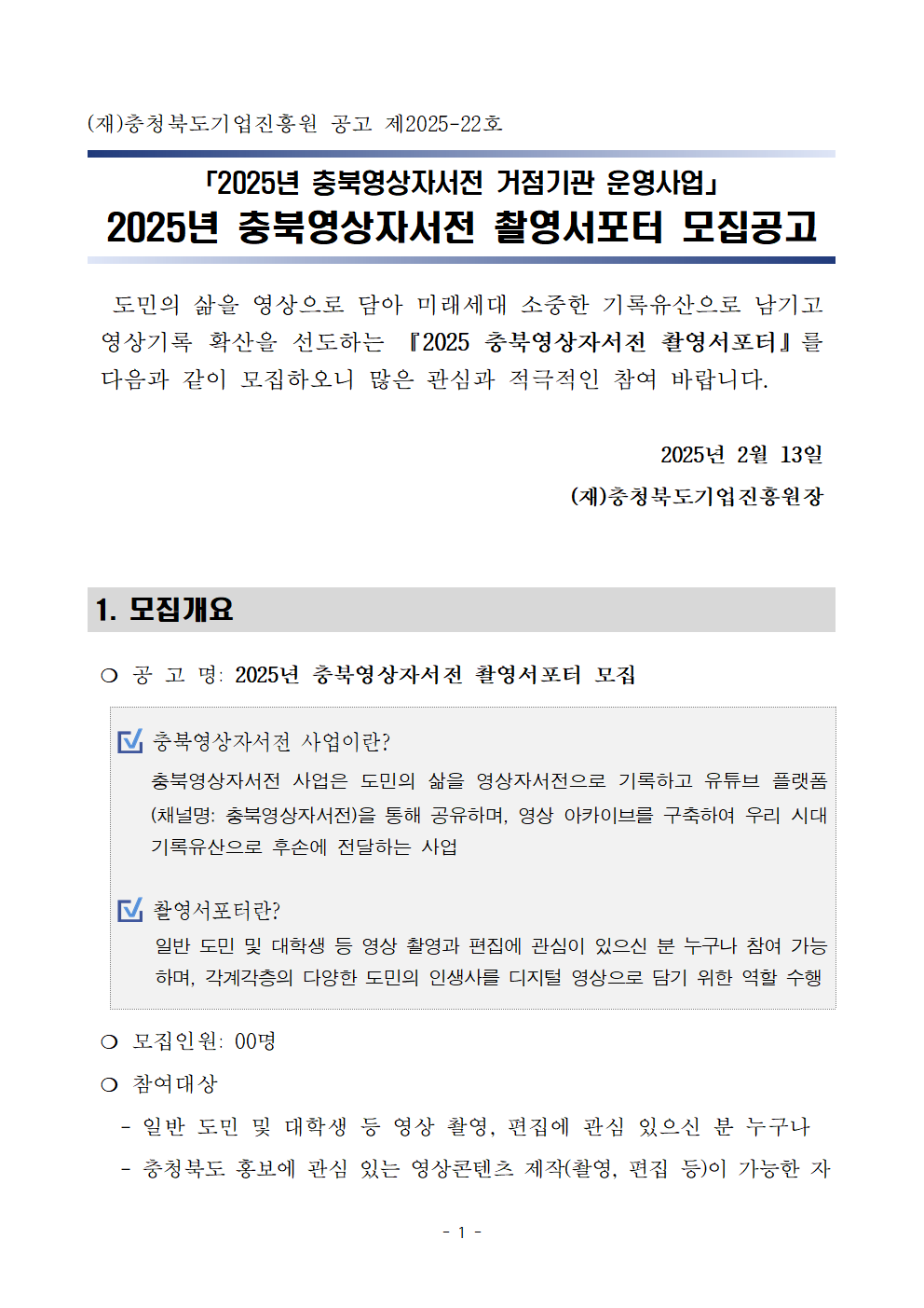 | 2025년 충북 영상자서전 촬영서포터 모집공고 | |||||