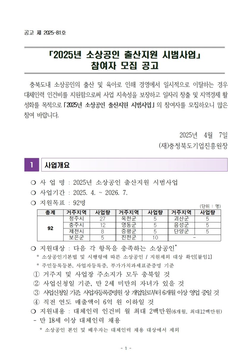 | [모집마감] 2025년 소상공인 출산지원 시범사업 참여자 모집공고 | |||||