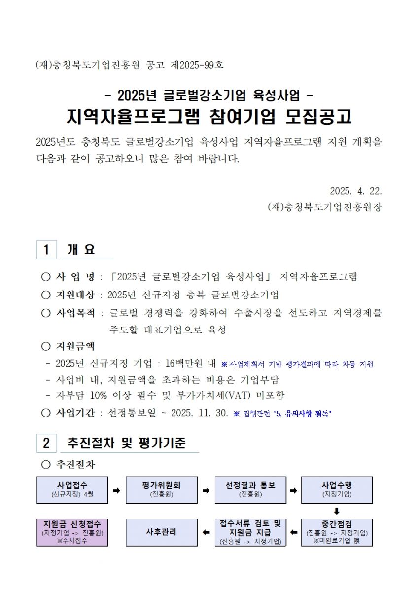 | 2025년도 글로벌강소기업 육성사업 지역자율프로그램 모집공고(2차) | |||||