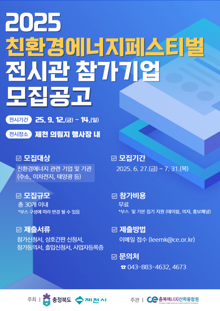 | 「2025 친환경에너지 페스티벌」 전시관 참가기업 모집 안내 | |||||