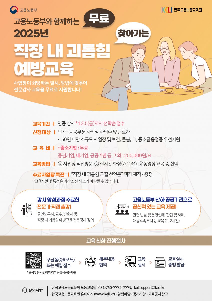| (찾아가는 교육) 직장 내 괴롭힘 예방교육 안내 | |||||