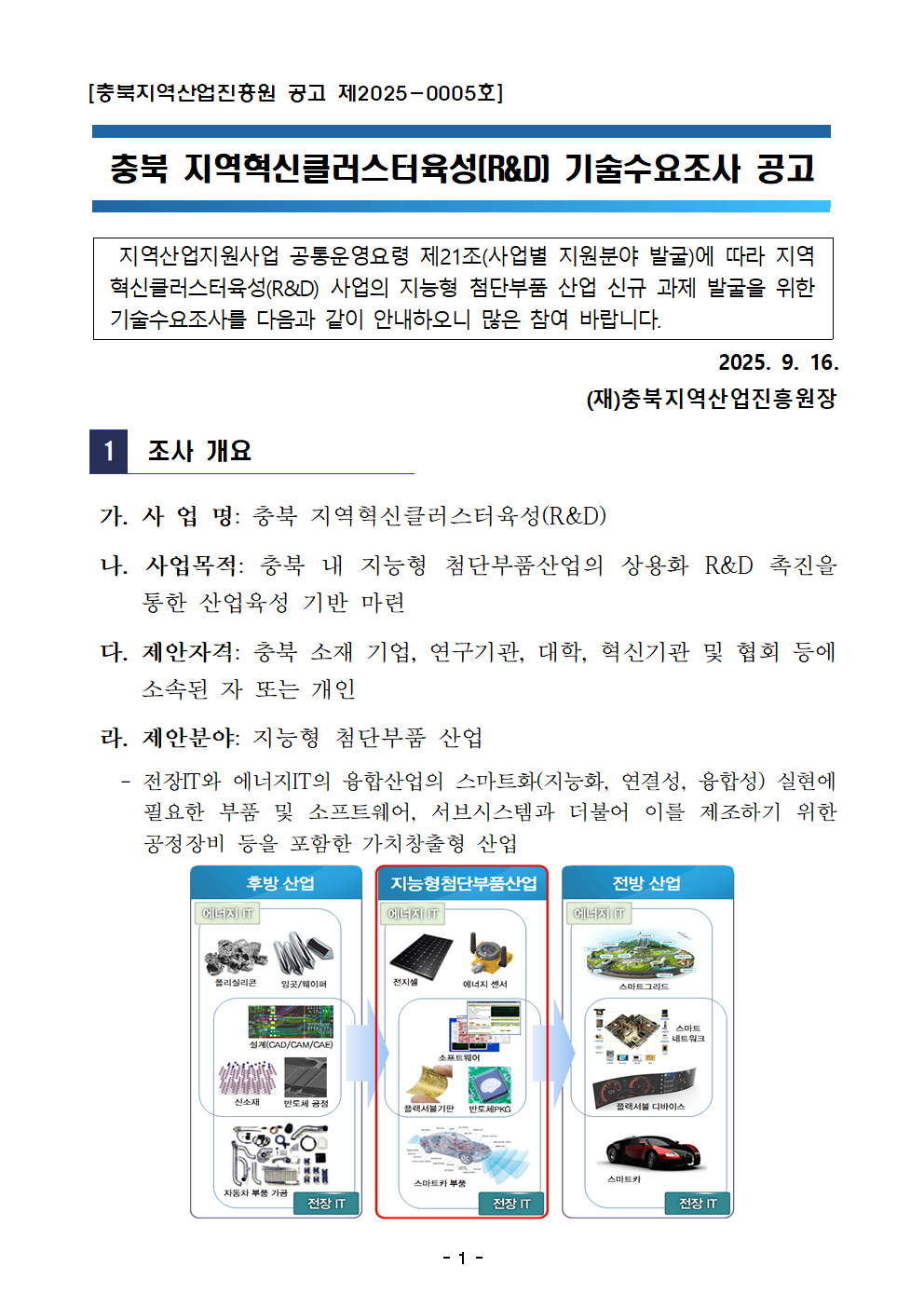 충북 지역혁신클러스터육성(R&D) 기술수요조사 공고