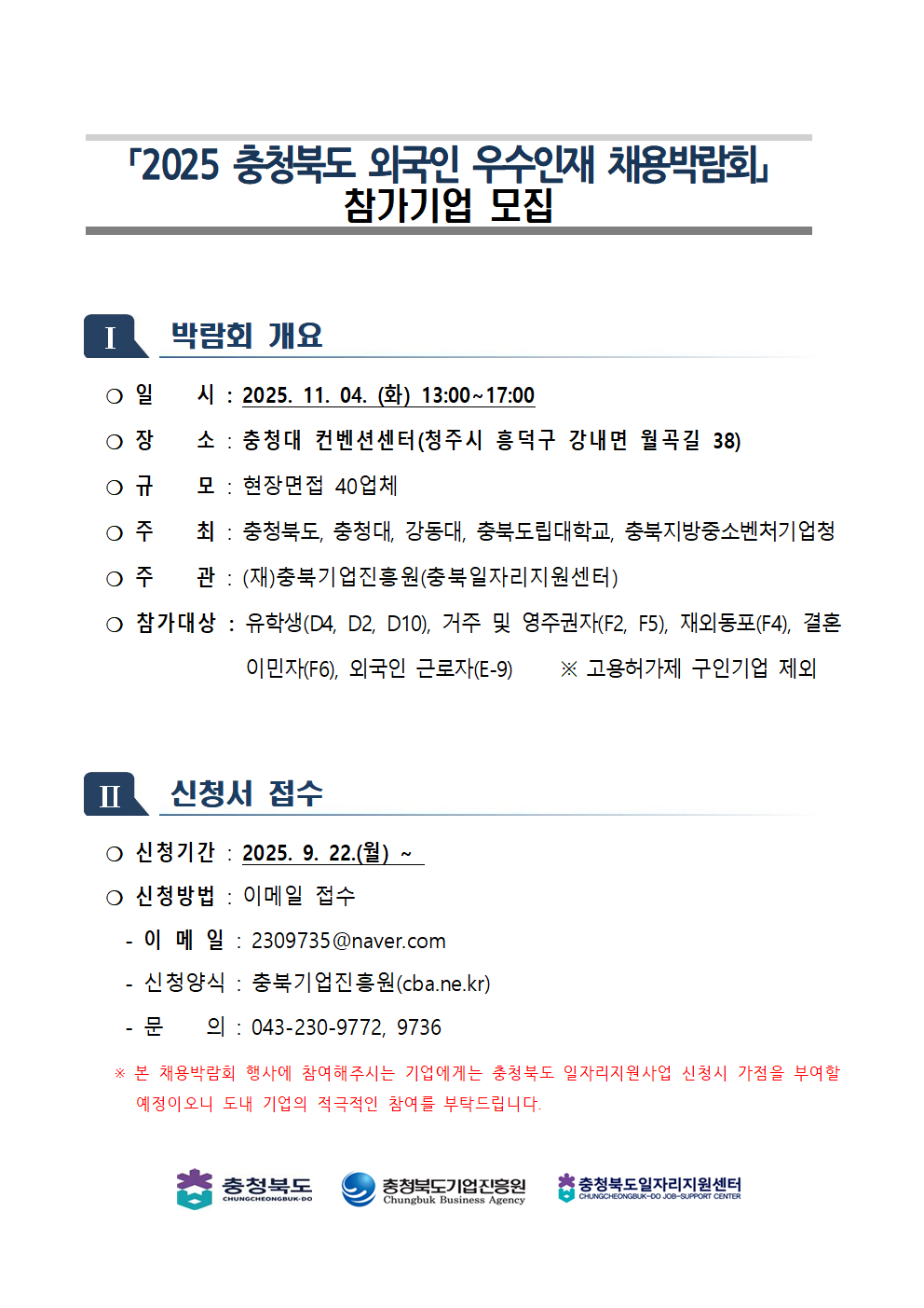 | 『2025 충청북도 외국인 우수인재 채용박람회』기업 모집 | |||||