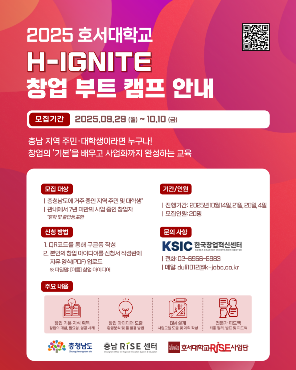 | [한국창업혁신센터] 호서대학교 창업 부트 캠프 참여자 모집 | |||||