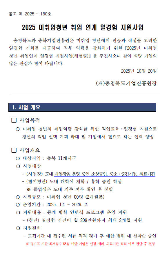 | 2025년 미취업청년 취업연계 일경험 지원사업 [동계인턴] 참여기업 모집 | |||||