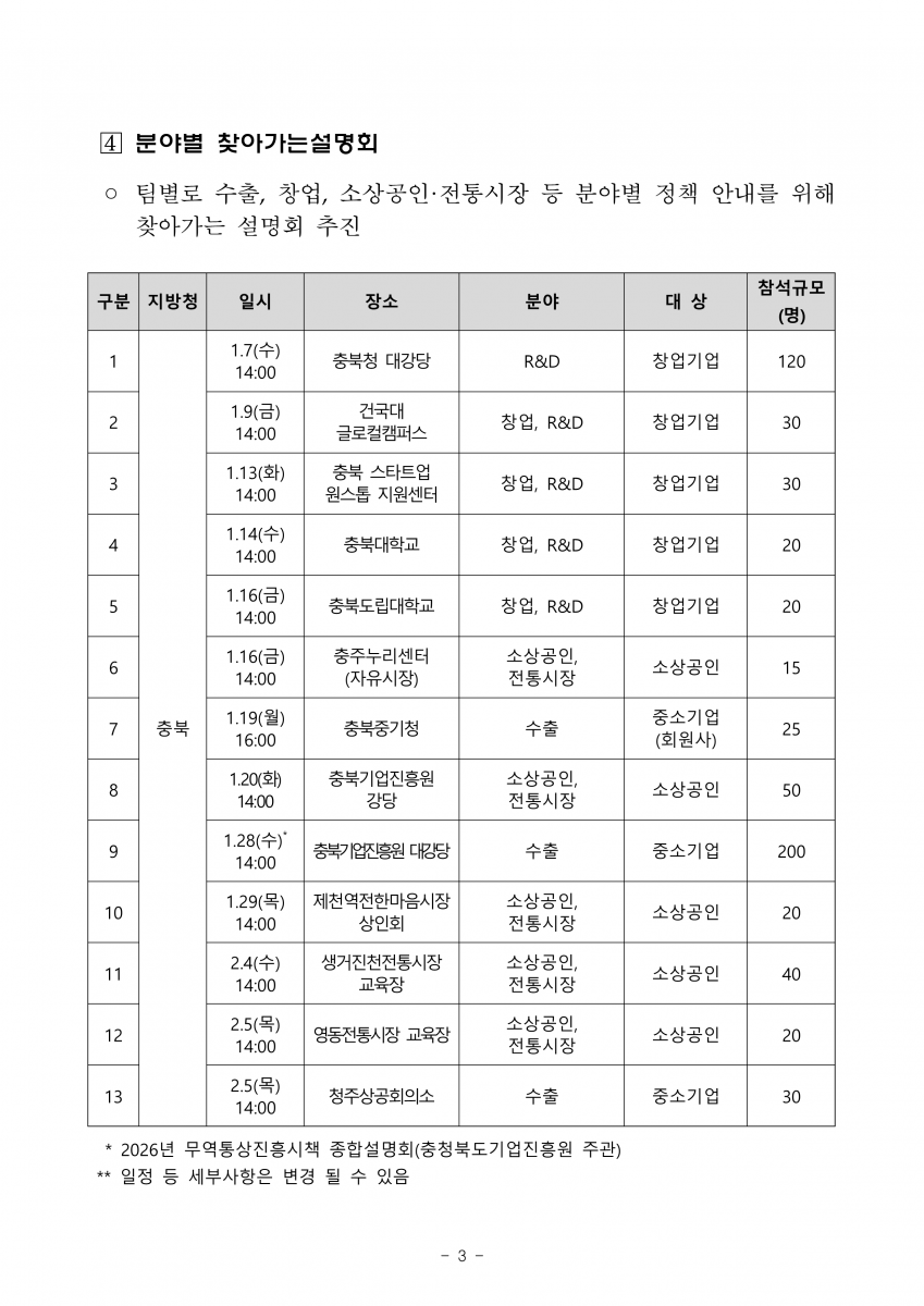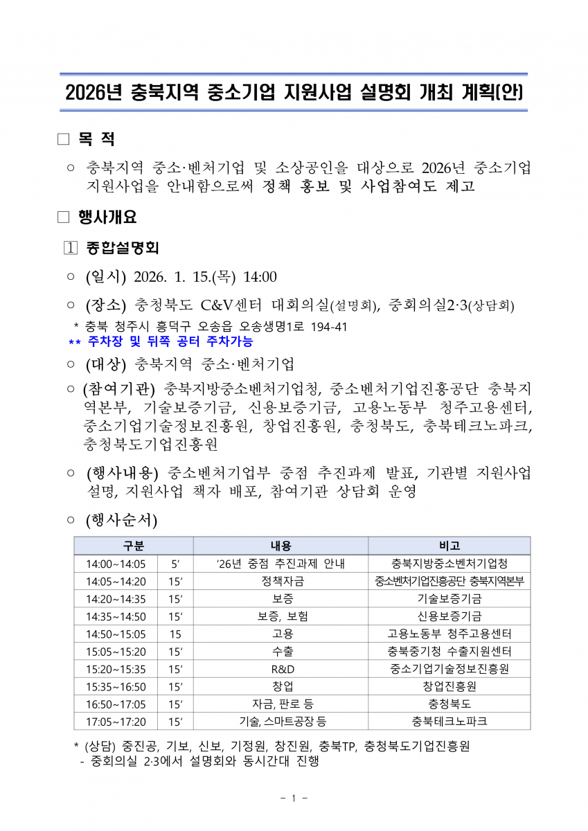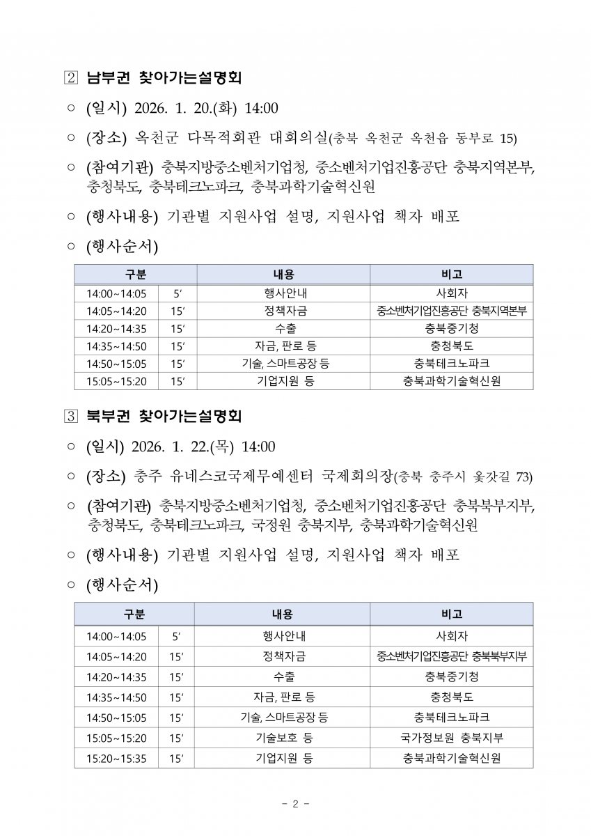 | 2026년 충북지역 중소기업 지원사업 설명회 개최 안내 | |||||