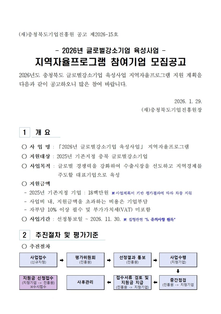 | 2026년도 글로벌강소기업 육성사업 지역자율프로그램 모집공고(1차) |