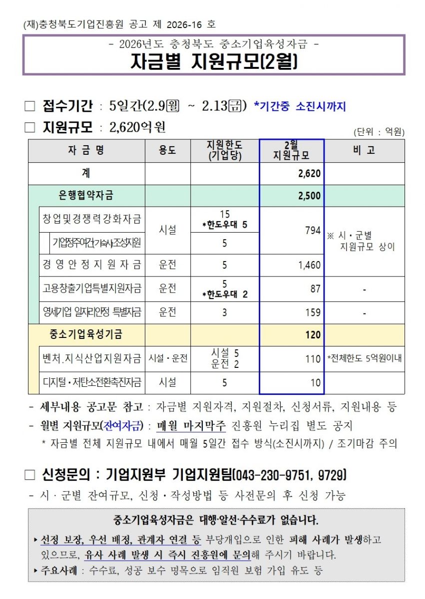 붙임1. 2026년 충청북도 중소기업육성자금 자금별 지원규모(2월).pdf
