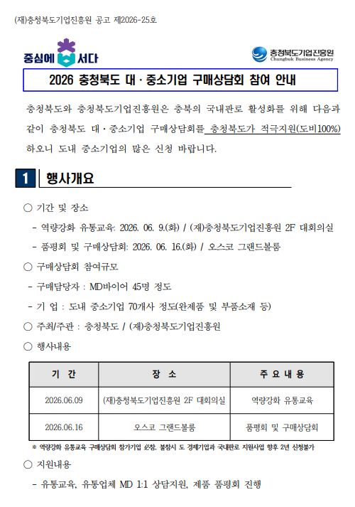 | 2026 대중소기업 구매상담회 참여기업 모집공고(기간연장) | |||||