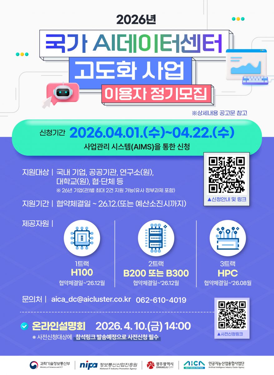 | 2026년 국가 AI데이터센터 고도화사업 이용자 정기모집 |